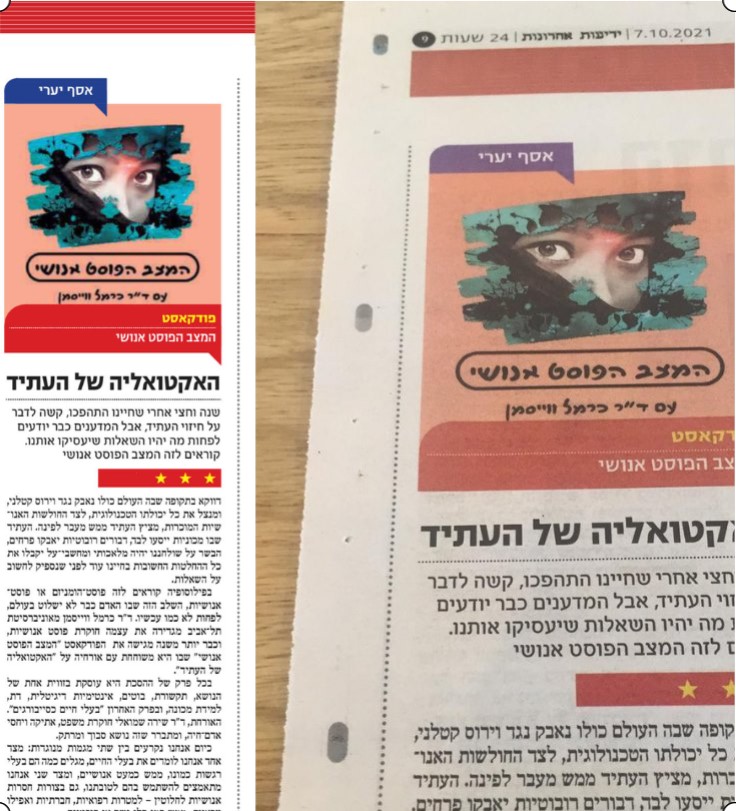 העתיד והעבר קרסו לתוך ההווה ונלחמים זה בזה. מצאנו את עצמנו בהצטלבות בין שני מאבקים: בין המודרנה הליברלית לבין העולם התיאולוגי-דתי, ובין פונדמנטליזם מוסלמי לפונדמנטליזם יהודי, כשהפונדמנטליזם הנוצרי ממתין לתורו להיכנס למערכה, והפרוגרסיביות הרדיקלית בעולם הנוצרי לוקה בעיוורון מוסרי, כשהיא בוחרת צד דווקא במאבק השני. חלק מהערכת המצב הנדרשת כרגע היא לא רק רציונלית- פוליטית- בטחונית, אלא יש לקחת בחשבון את תמונת המצב התיאולוגית הקיימת בשלוש הדתות הגדולות, ואשר מזינה תחומים אלה. בחלק הראשון של הפרק אני מוסיפה גם מספר אבחנות על טכנולוגיה סביב ארועי 7.10.23 כהשלמה לפרק הבונוס הקודם